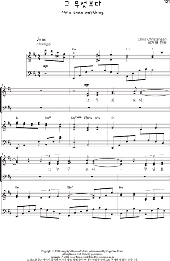 | 그 무엇보다 | 성가 4부 + 피아노 반주 |