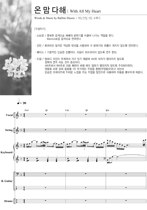 | 온 맘 다해 | 성가 2부 + 피아노 반주 |