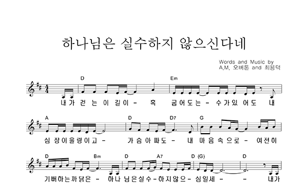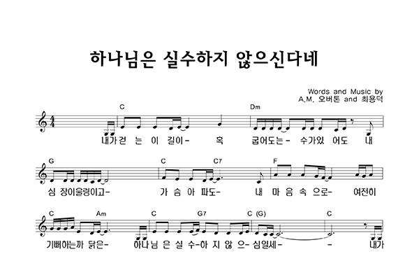 | 하나님은 실수하지 않으신다네 | 성가 4부 + 피아노 반주 |