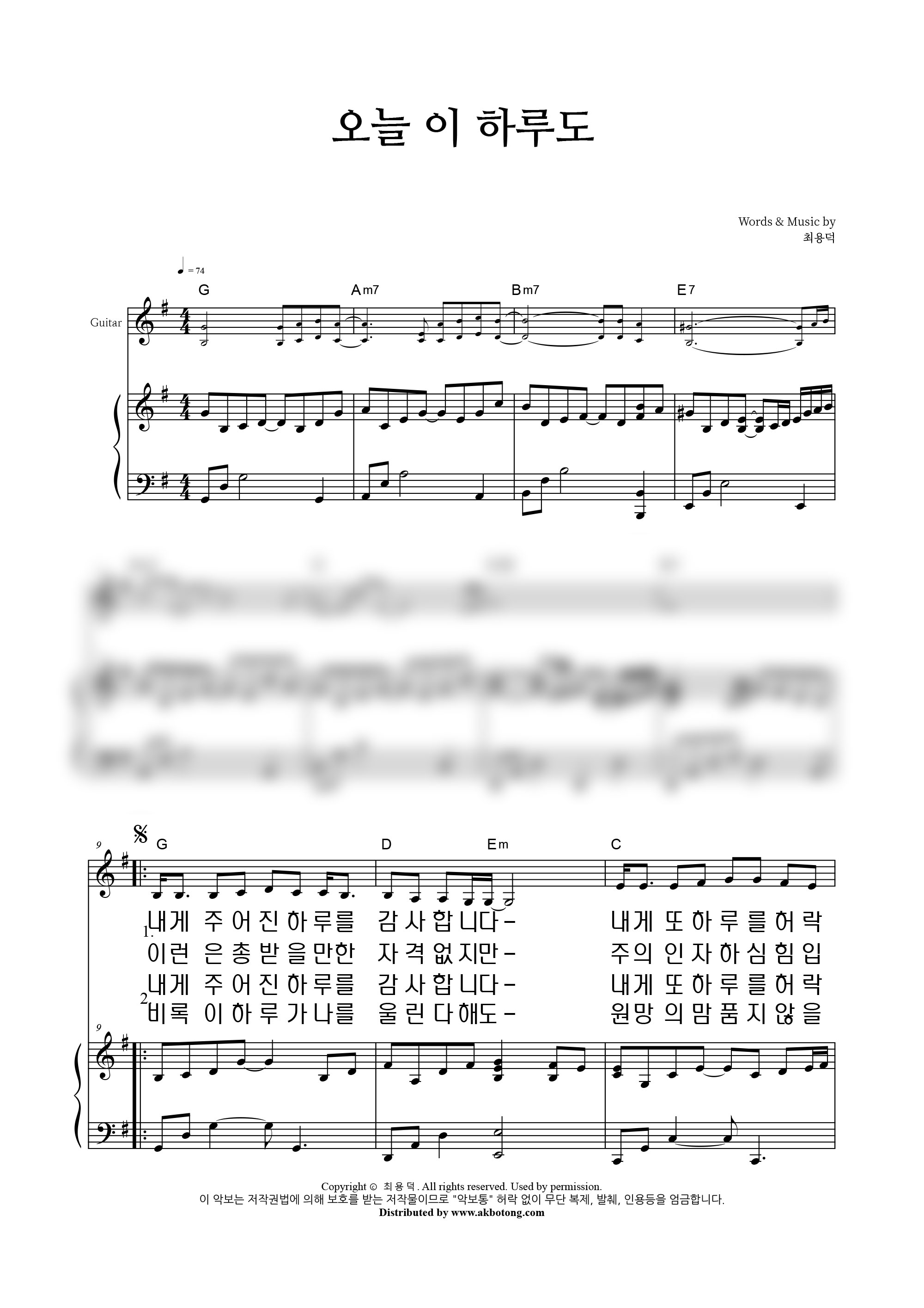 | 오늘 이 하루도 | 성가 2부 + 피아노 반주 |