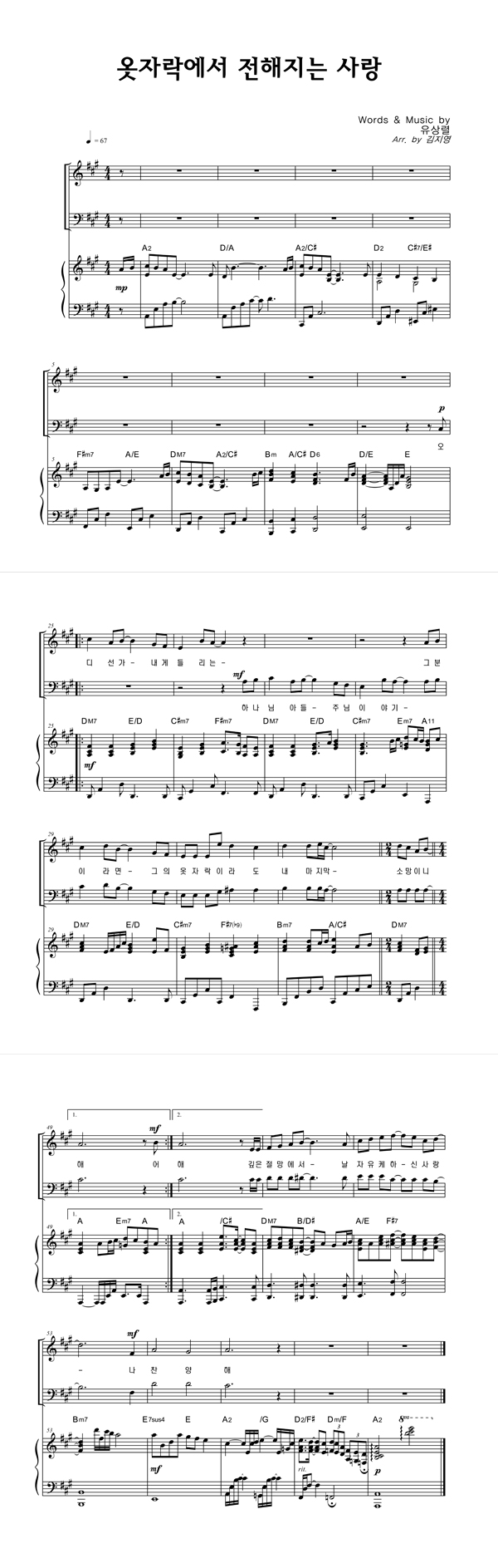 | 옷자락에서 전해지는 사랑 | 성가 3부 + 피아노 반주 |