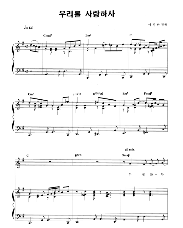 | 우리를 사랑하사 | 성가 4부 + 피아노 반주 |