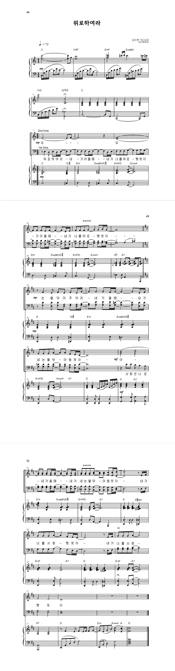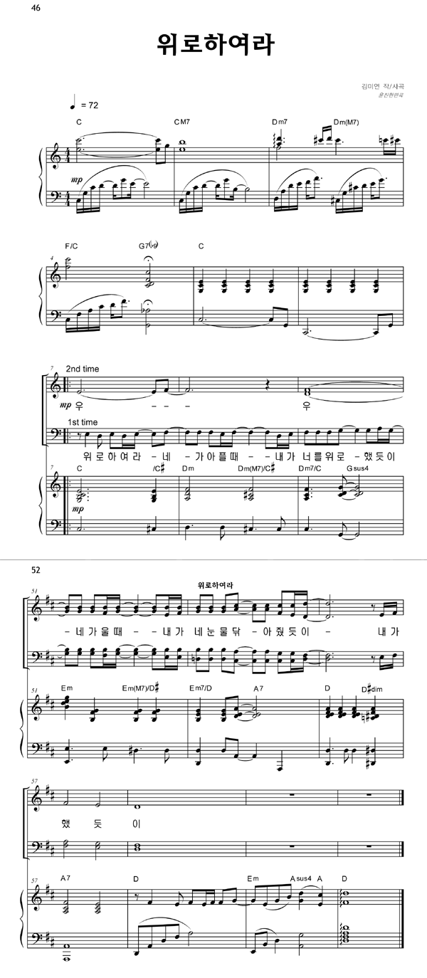 | 위로 하여라 | 성가 4부 + 피아노 반주 |