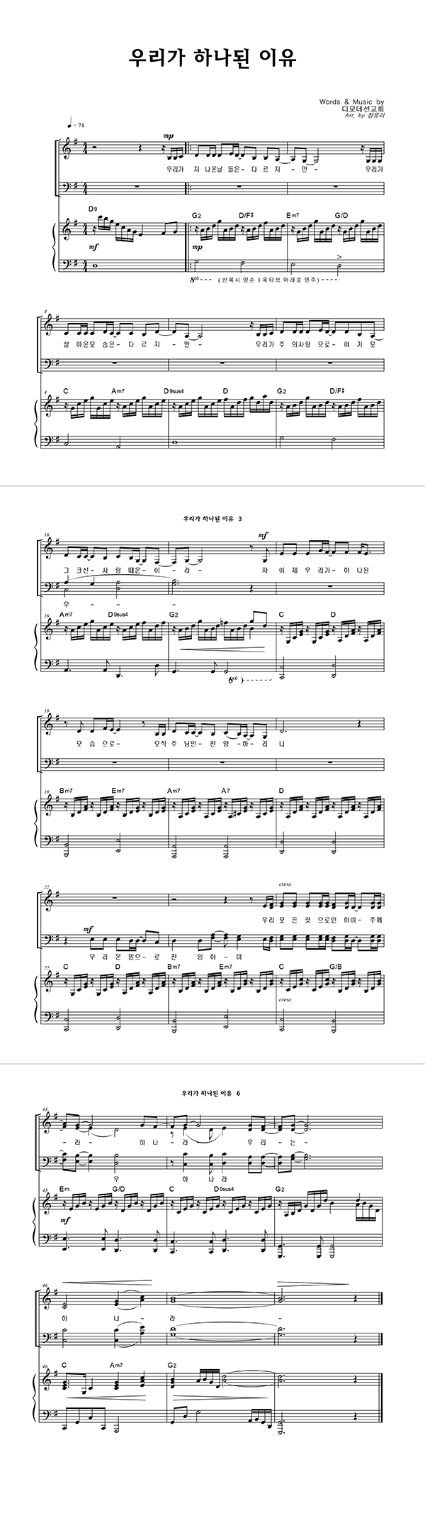 | 우리가 하나된 이유 | 성가 4부 + 피아노 반주 |