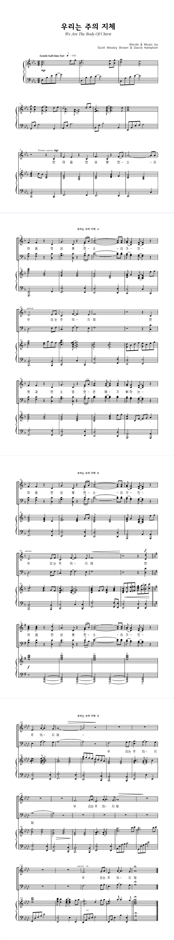 '우리는 주의 지체' 의 다른 악보형식