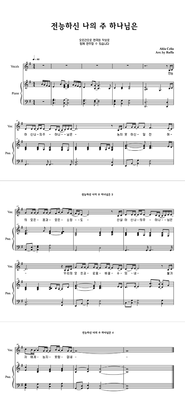 | 전능하신 나의 주 하나님은 | 성가 2부 + 피아노 반주 |