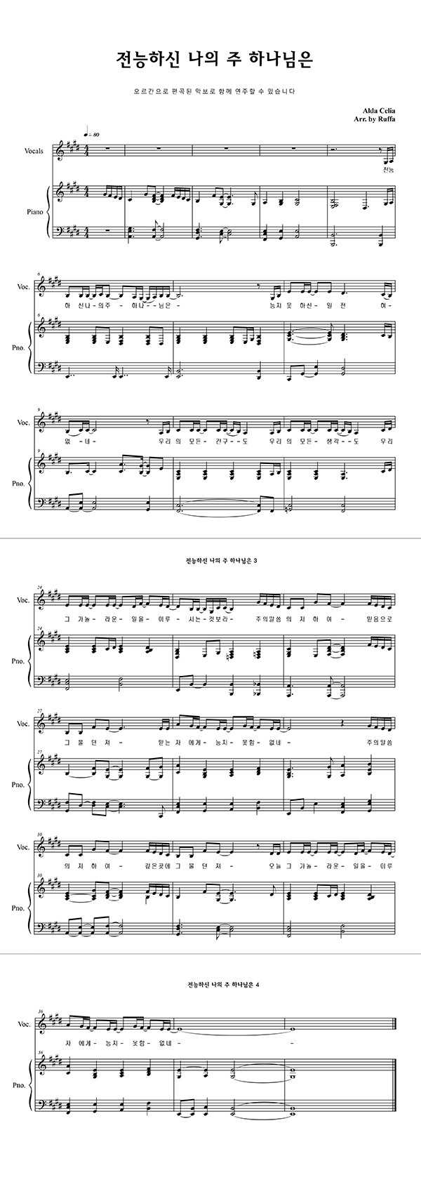 | 전능하신 나의 주 하나님은 | 성가 4부 + 피아노 반주 |