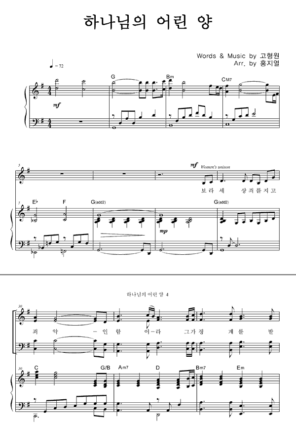 | 하나님의 어린 양 | 성가 4부 + 피아노 반주 |