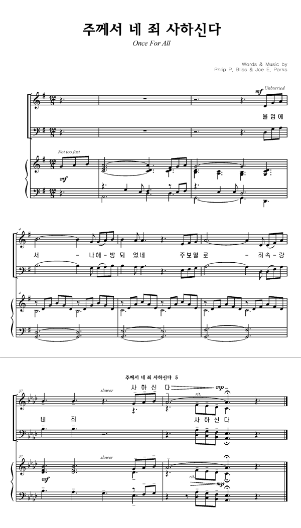 '주께서 네 죄 사하신다' 의 다른 악보형식