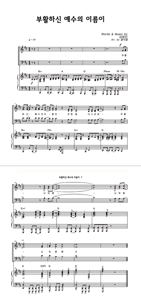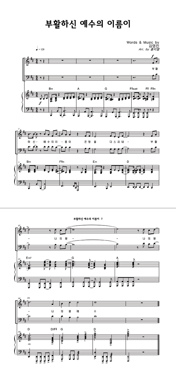 | 부활하신 예수의 이름이 | 성가 3부 + 피아노 반주 |