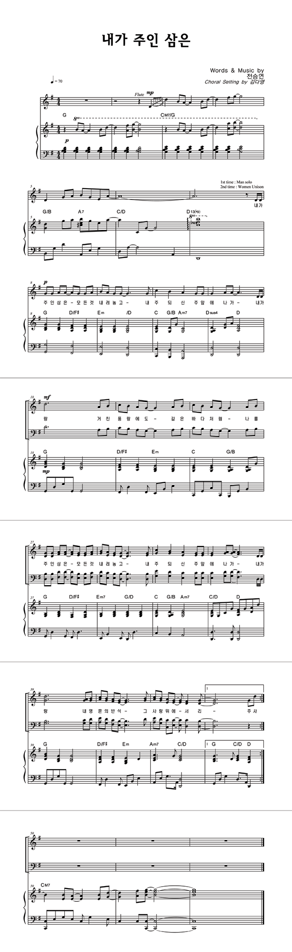 | 내가 주인 삼은 | 성가 2부 + 피아노 반주 |