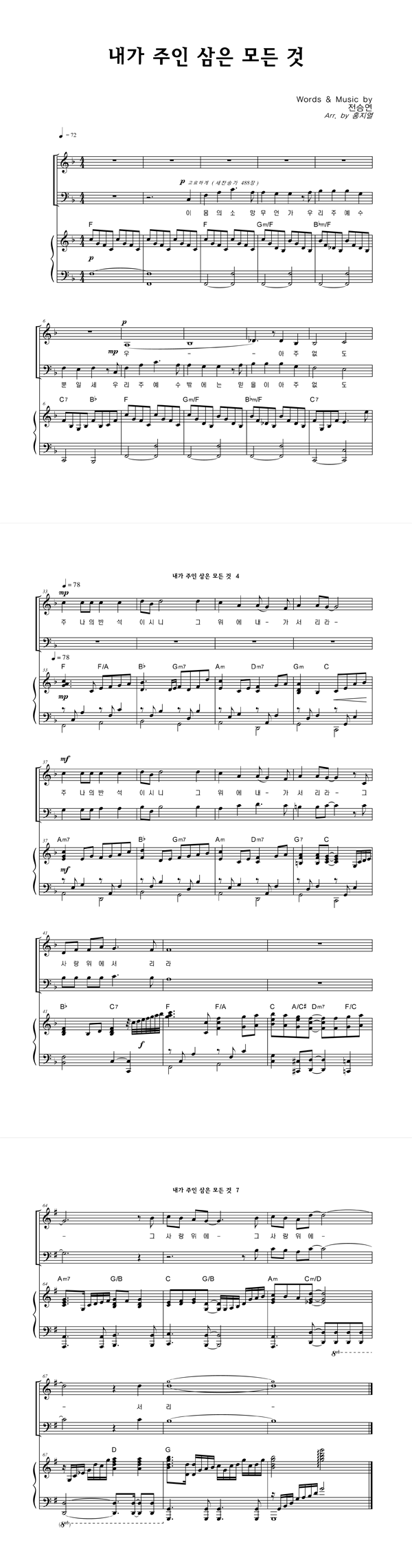 | 내가 주인 삼은 | 성가 3부 + 피아노 반주 |