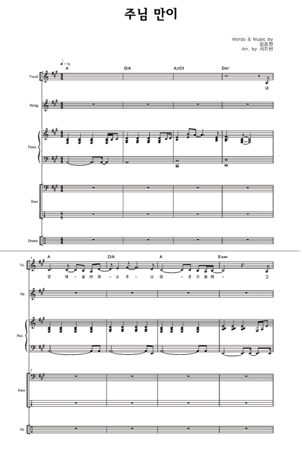| 주님만이 | 성가 4부 + 피아노 반주 |