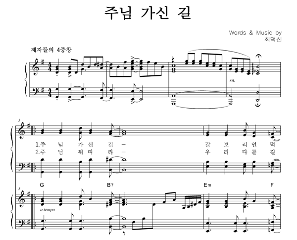 | 주님 가신 길 | 성가 4부 + 피아노 반주 |
