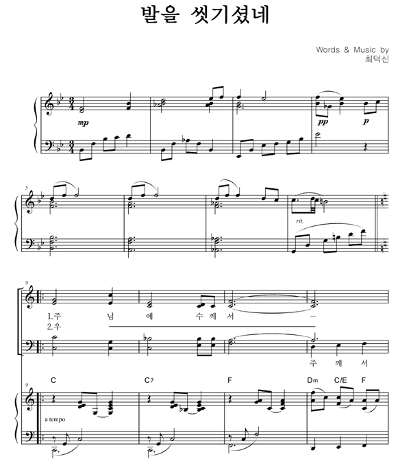 | 발을 씻기셨네 | 성가 4부 + 피아노 반주 |
