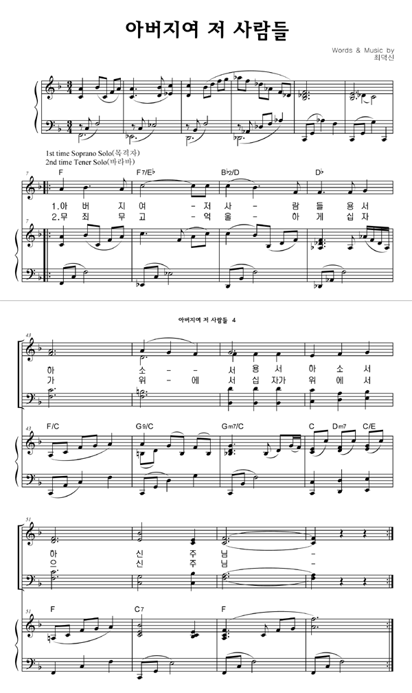 | 아버지여 저 사람들 | 성가 4부 + 피아노 반주 |