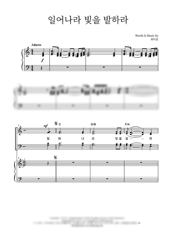 | 일어나라 빛을 발하라 | 성가 4부 + 피아노 반주 |