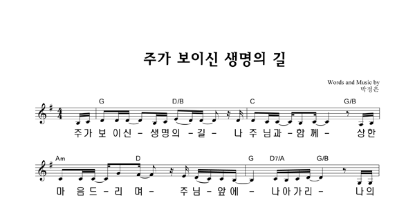 | 주가 보이신 생명의 길 | 성가 4부 + 피아노 반주 |