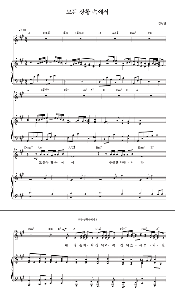 | 지금은 엘리야 때 처럼 | 성가 3부 + 피아노 반주 |