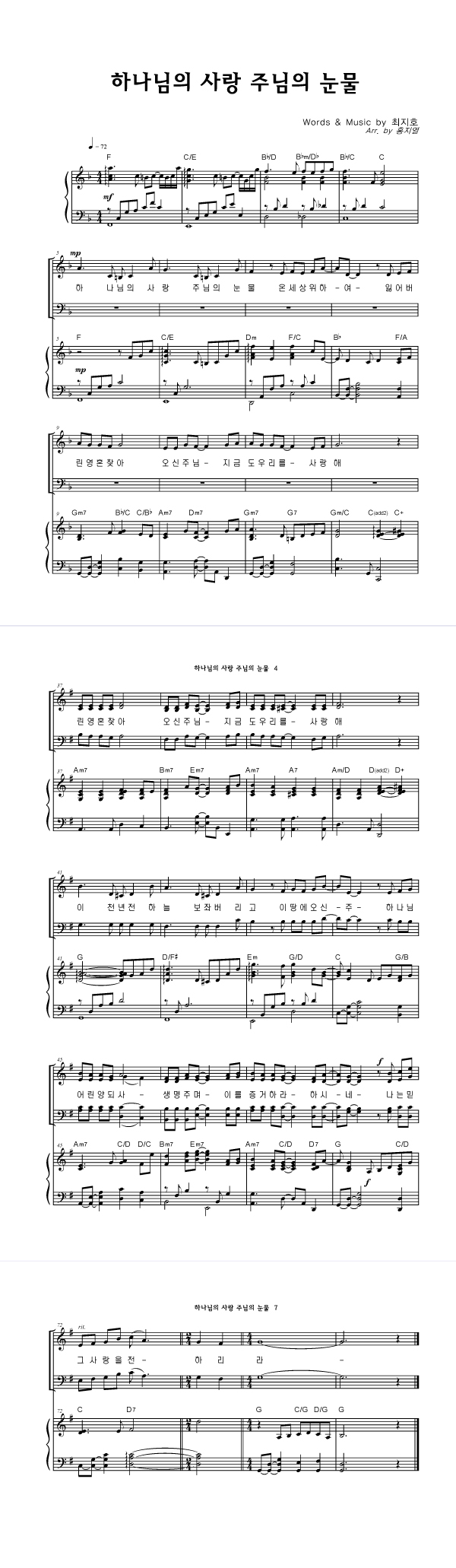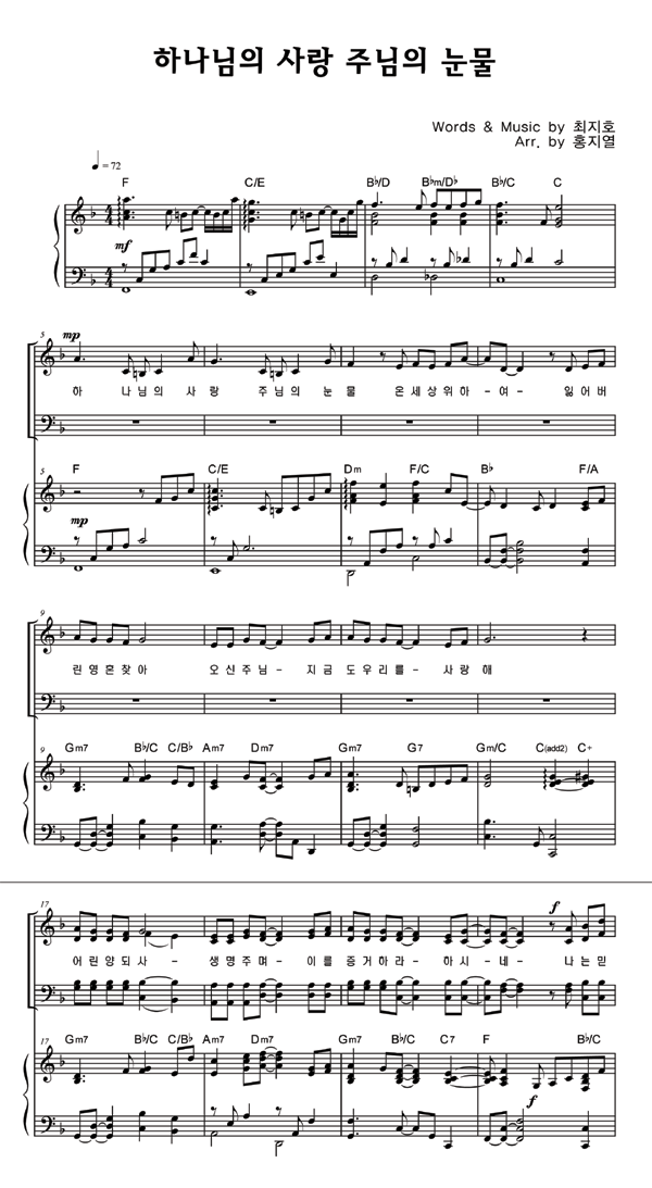 | 하나님의 사랑 주님의 눈물 | 성가 4부 + 피아노 반주 |