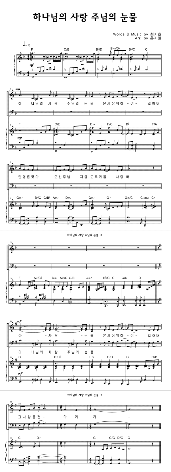 | 하나님의 사랑 주님의 눈물 | 성가 3부 + 피아노 반주 |