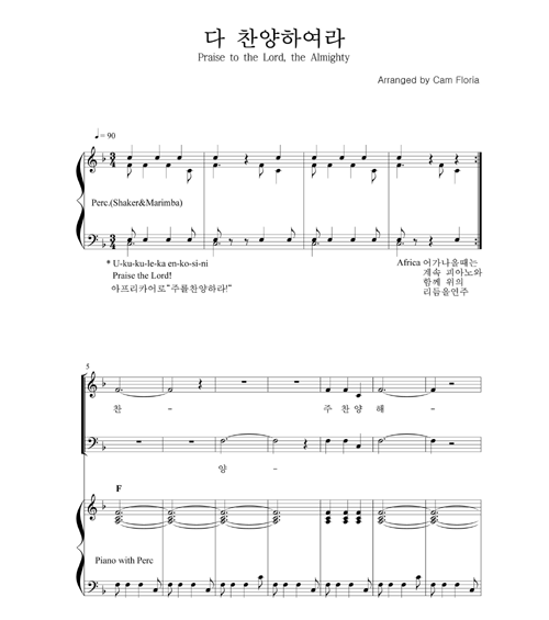 | 다 찬양하여라 | 성가 4부 + 피아노 반주 |