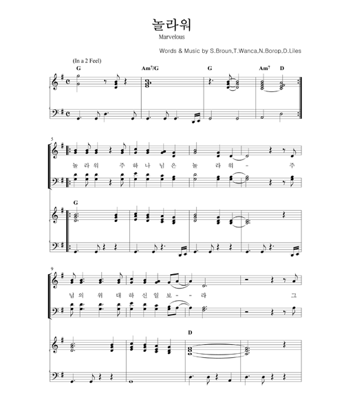 | 놀라워 | 성가 4부 + 피아노 반주 |
