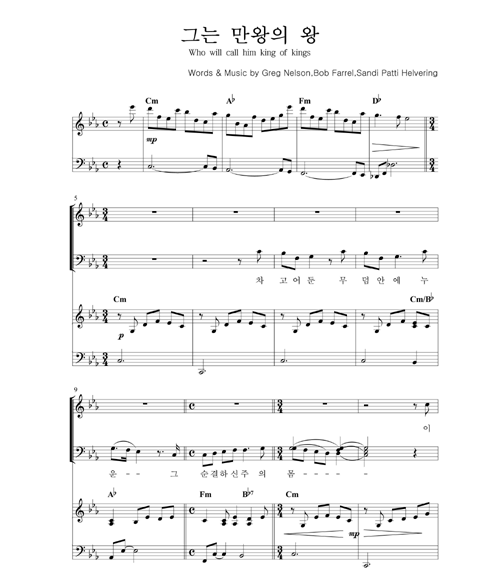 | 그 분은 만왕의 왕 | 성가 4부 + 피아노 반주 |