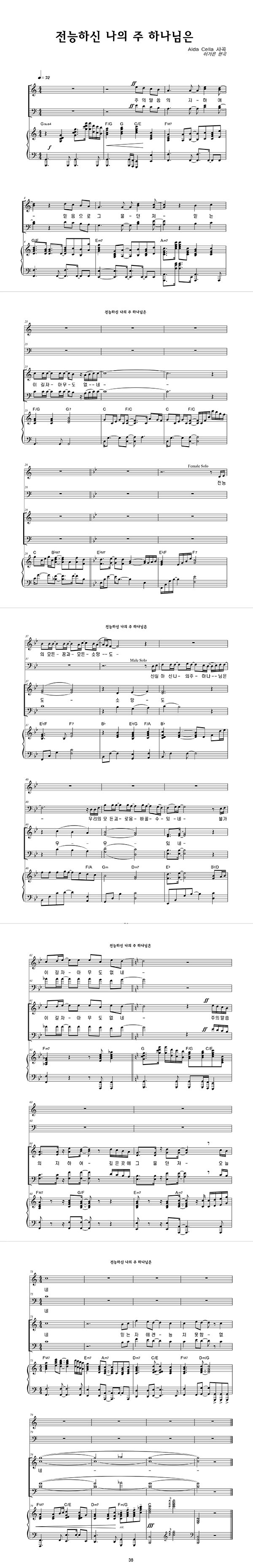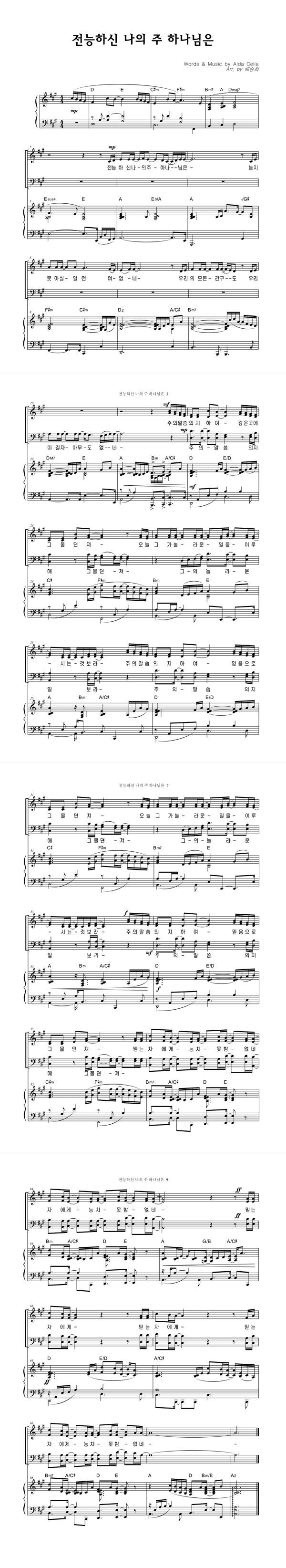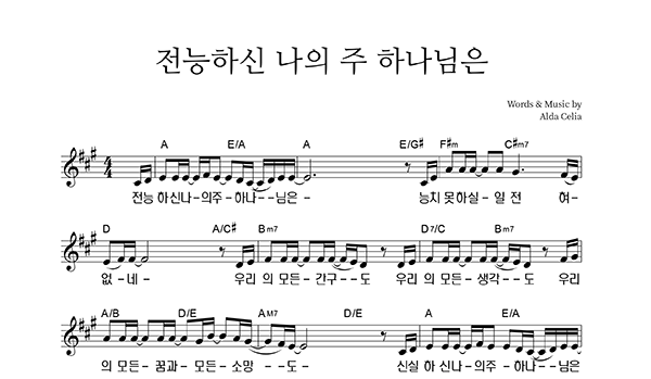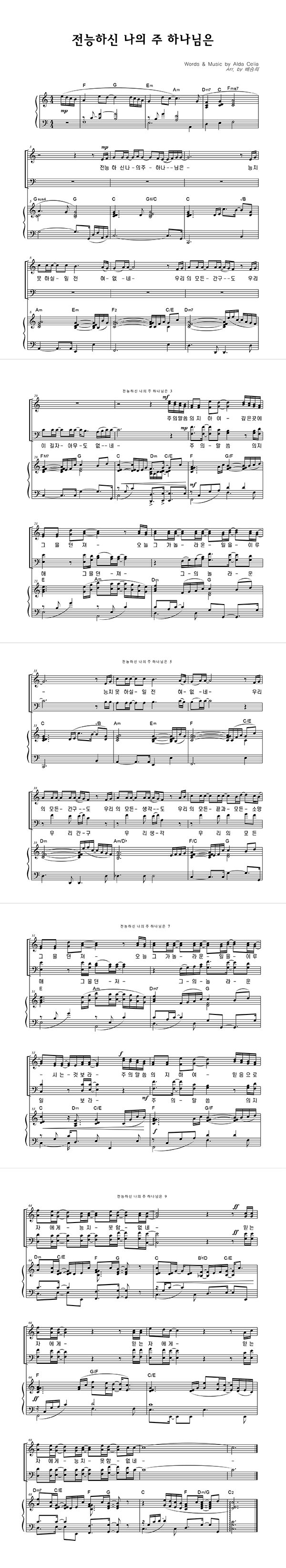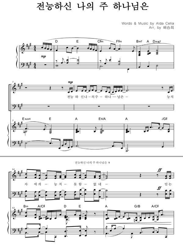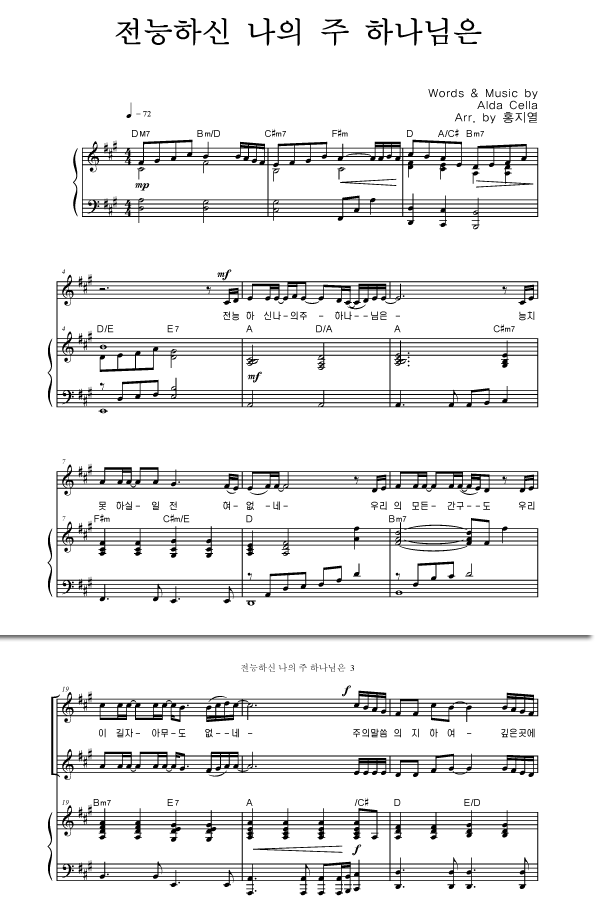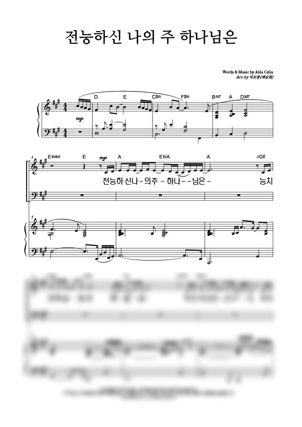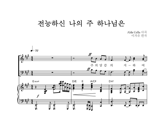 | 전능하신 나의 주 하나님은 | 성가 2부 + 피아노 반주 |