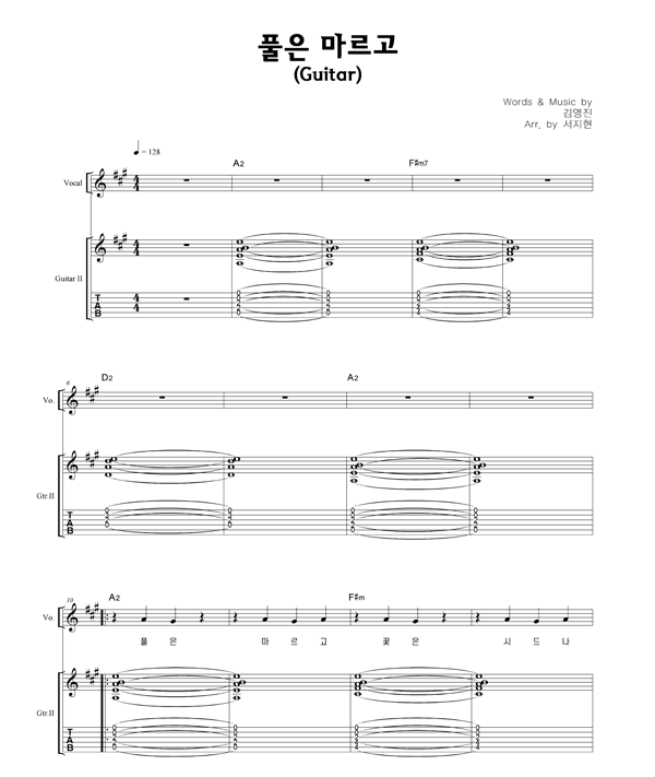 '풀은 마르고' 의 다른 악보형식