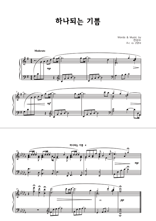 '하나되는 기쁨' 의 다른 악보형식