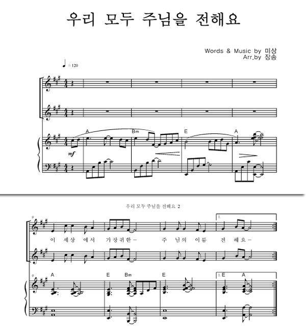 | 우리 모두 주님을 전해요 | 성가 2부 + 어린이 |