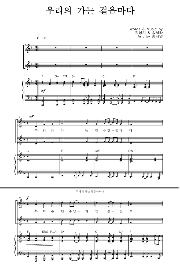 | 우리의 가는 걸음마다 | 성가 2부 + 어린이 |