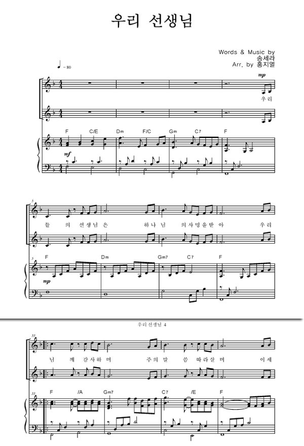 | 우리 선생님 | 성가 2부 + 어린이 |