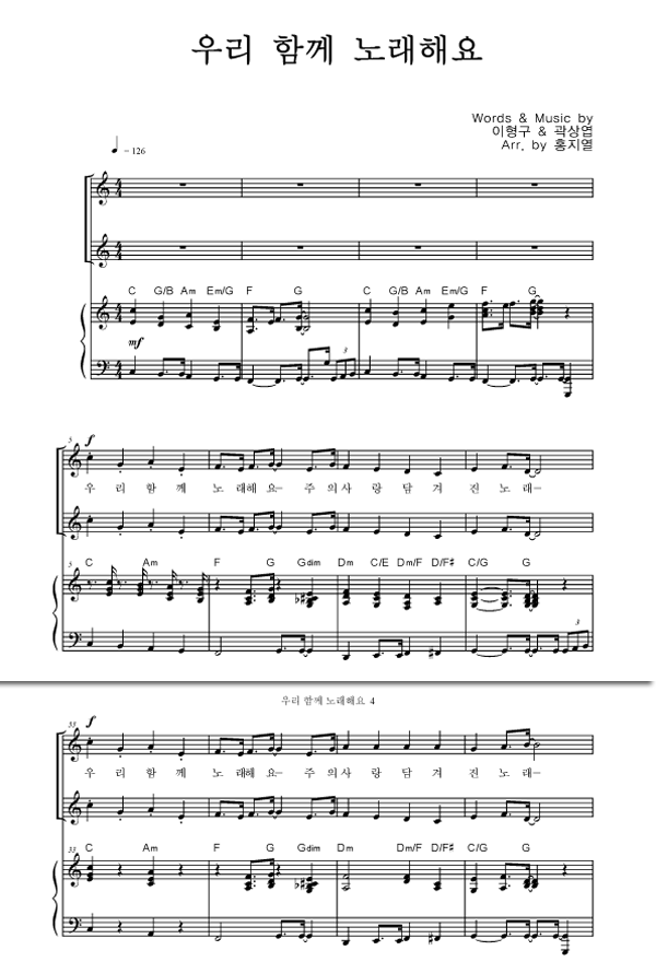 | 우리 함께 노래해요 | 성가 2부 + 어린이 |