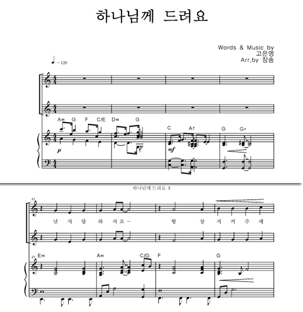 | 하나님께 드려요 | 성가 2부 + 피아노 반주 |