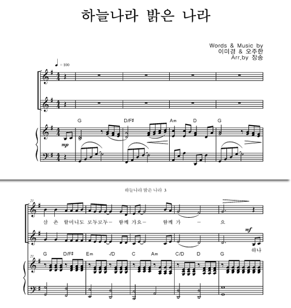 '하늘 나라 밝은 나라' 의 다른 악보형식