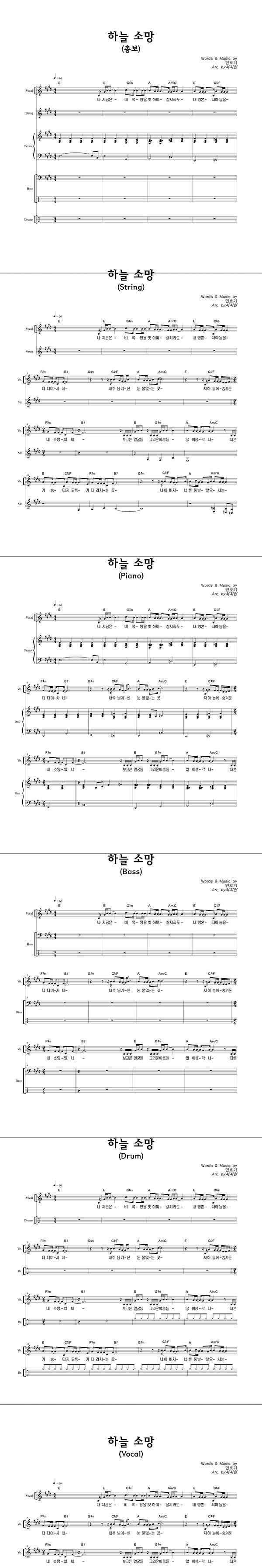 '하늘 소망' 의 다른 악보형식