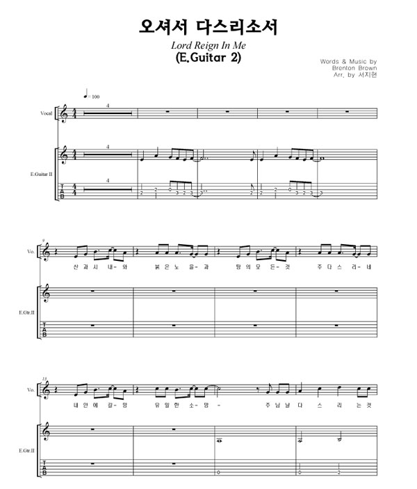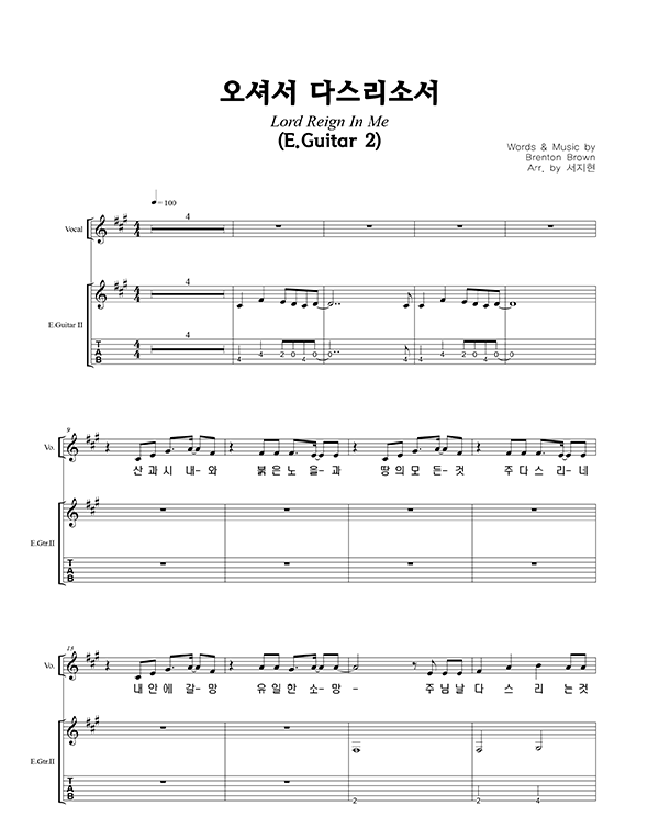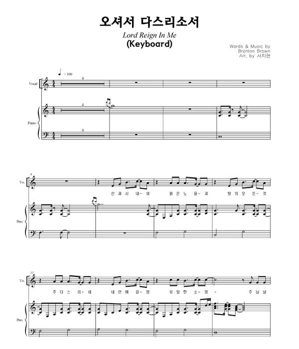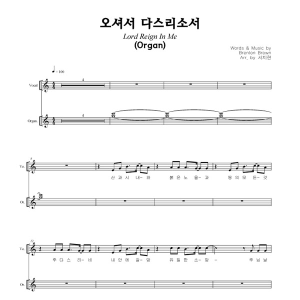| 오셔서 다스리소서 | 성가 2부 + 피아노 반주 |
