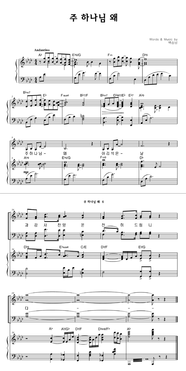 | 주 하나님 왜 | 성가 4부 + 피아노 반주 |