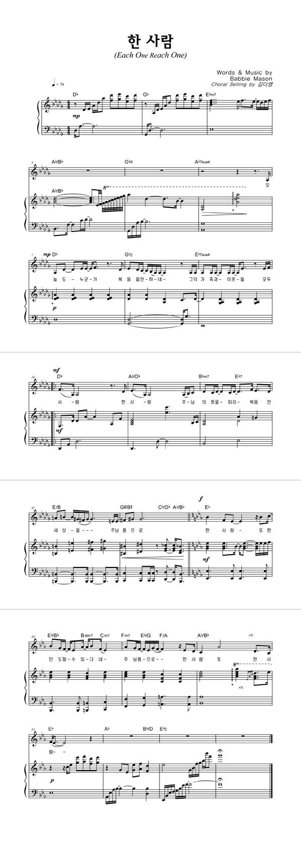 | 한 사람 큰글씨 | 성가 4부 + 피아노 반주 |