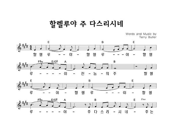 | 할렐루야 주 다스리시네 큰글씨 | 단선 |