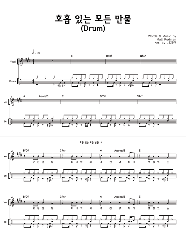 | 호흡있는 모든 만물 | 성가 3부 + 피아노 반주 |
