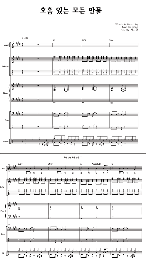 | 호흡있는 모든 만물 | 성가 2부 + 피아노 반주 |