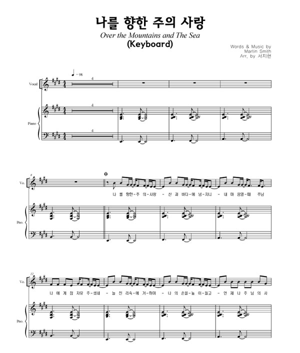 | 나를 향한 주의 사랑 | 성가 2부 + 피아노 반주 |