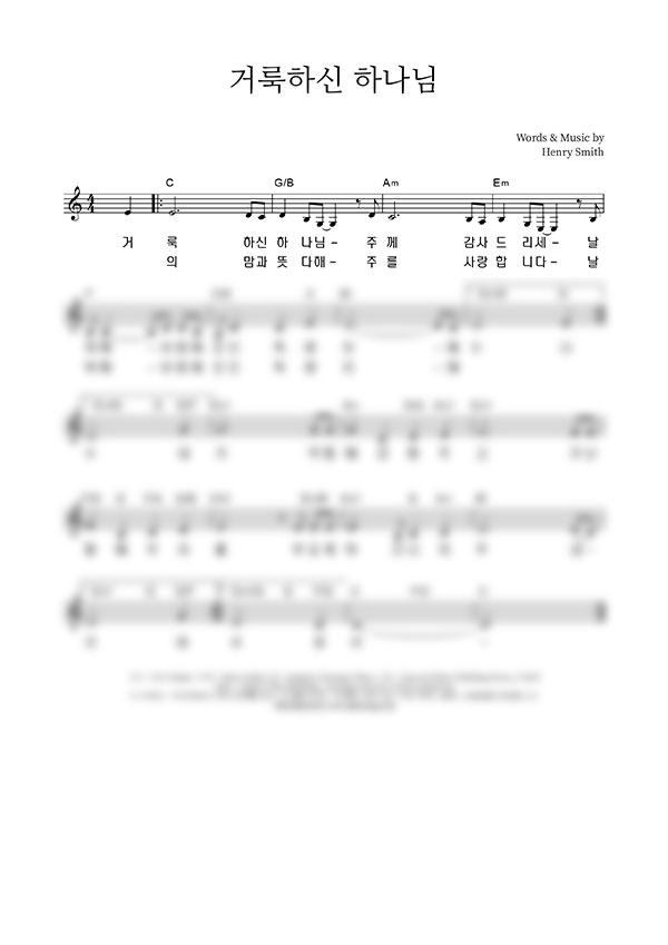 | 존귀 오 존귀하신 주 | 성가 4부 + 피아노 반주 |
