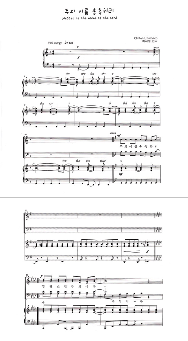 | 주의 이름 송축하리 | 성가 4부 + 피아노 반주 |