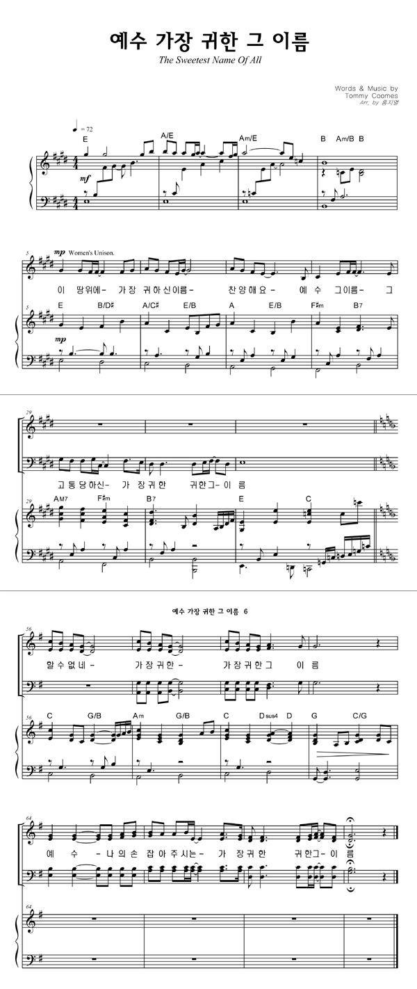 | 오직 예수 다른 이름은 없네 | 성가 3부 + 피아노 반주 |