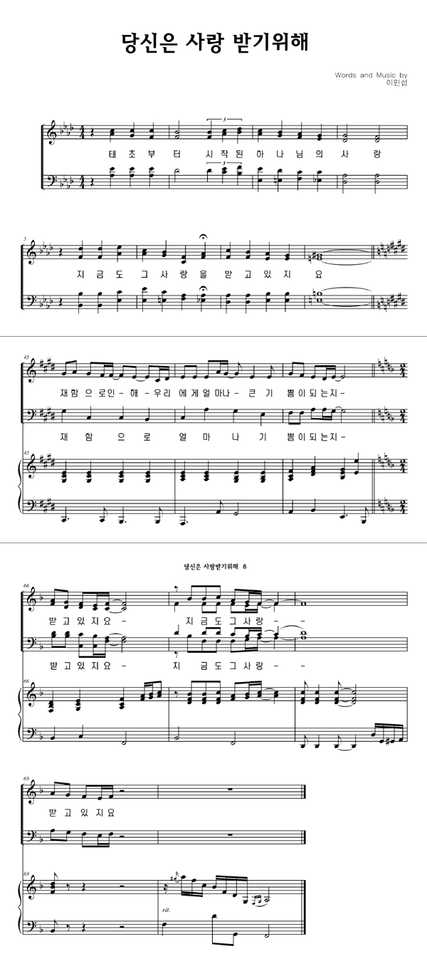 | 당신은 사랑 받기 위해 태어난 사람 | 성가 4부 + 피아노 반주 |