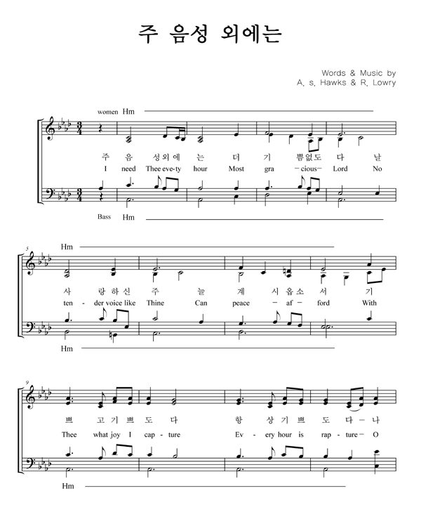 | 주 음성 외에는 | 성가 4부 + 피아노 반주 |